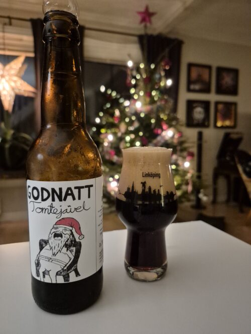 Torkad frukt, mogna röda äpplen, sirap/farinsocker. Bra balanserad öl som passar helt perfekt till julbordet. Den är så fint balanserad att det nästan är svårt...