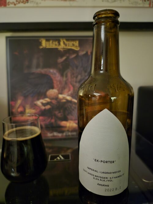 Gotländsk porter, lagrad med fransk ek, årgång 2022. Lakrits, choklad, svarta vinbär, kavring, lätta vaniljtoner. Robust öl på 8.5% med stor fyllighet och beska. Något...